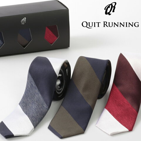 ピュアシルク100% ネクタイ 3本セット Quit Running ストライプ 3種類 シルク ネクタイ ハンドメイド クイトランニング メンズ 英国ブランド ロック 個性的 音楽 男性向け プレゼント ギフト 就職祝い 卒業式