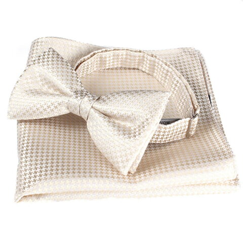日本製 蝶ネクタイ シルク ジャガード 蝶タイ ボウタイ 蝶ネクタイ チーフ・ポケットチーフ セット シャンパンゴールド 千鳥格子 礼装・フォーマル・発表会・音楽会・結婚式・社交ダンス・晩餐会・パーティ メンズ・紳士・男性
